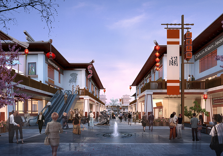 ? ? 文化商業(yè)街的設(shè)計頗具匠心,從入口處開始,至文化商業(yè)街出口處結(jié)束,整個用關(guān)羽輝煌起伏的一生為時間線進行貫穿。如果說整條街區(qū)是關(guān)羽在世生而仁、仁而勇、勇而義、義而忠的再現(xiàn),那么從街區(qū)的出口處就是關(guān)羽侯而王、王而帝、帝而圣、圣而天文化升華的開始。讓體驗者通過關(guān)公精神,體驗現(xiàn)代旅游綜合商業(yè)區(qū),建設(shè)一個集餐飲休閑、旅游度假為一體的傳統(tǒng)古典園林式的商業(yè)綜合體。